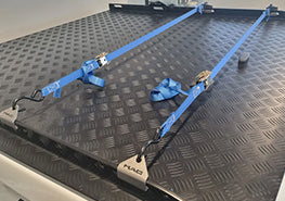 With the MAC230F and MAC230FR (Max 230kg static / 200kg secured) hard lids purchased with tracks fitted, we supply 4 x tie down points with 2 straps. The MAC300 (Max 300kg) hard lid is not supplied with any tie down kit but has 8 integrated load securing locations in the fixed rails. Be careful not to over tension any tie downs or strops as this could cause damage or distortion to your hard lid which is not covered under our warranty policy.